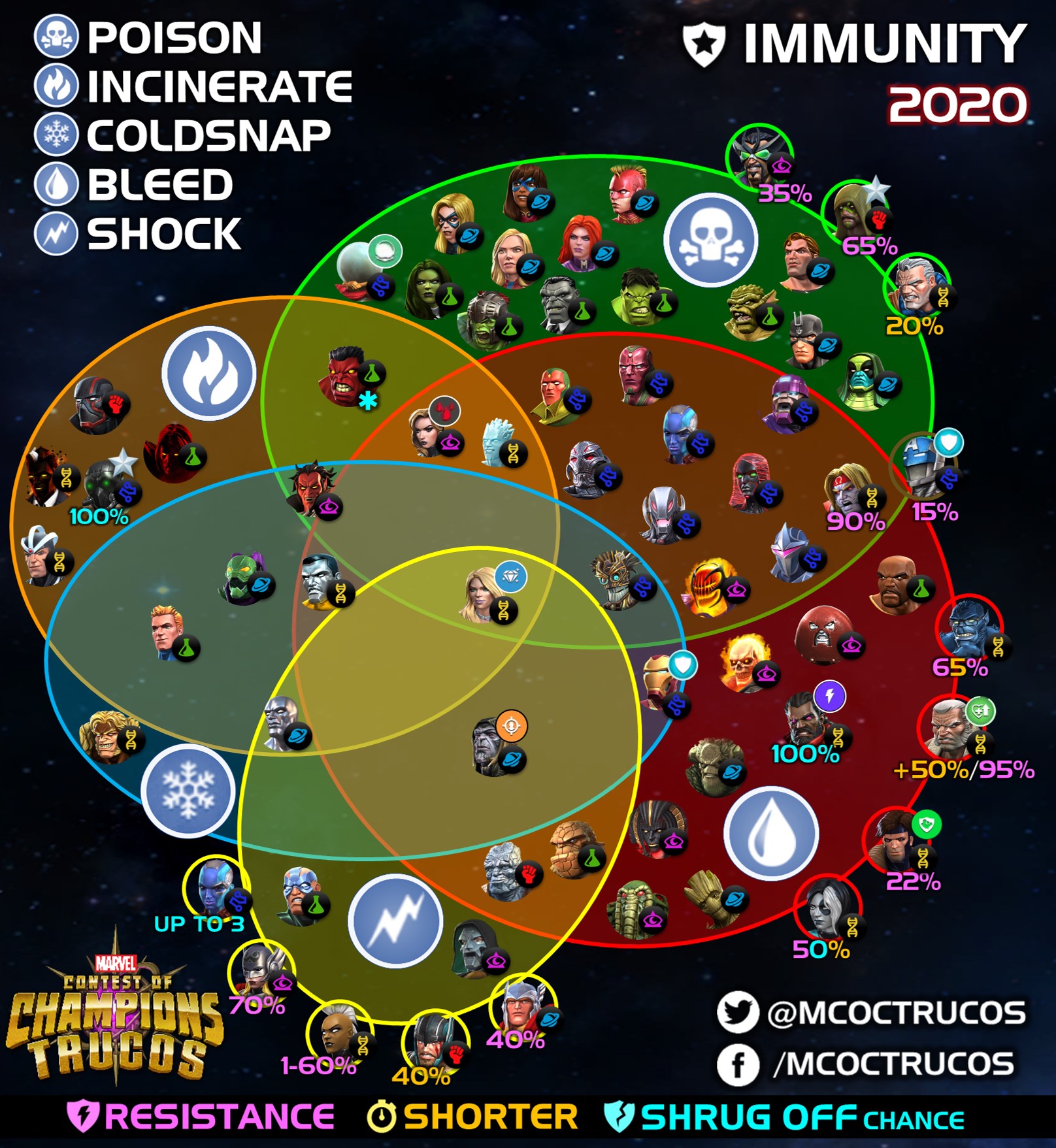 Marveltrucos On Twitter Immunity Damage Over Time Champions Poison Bleed Incinerate Degeneration Shock Coldsnap Limbo Updated Immunity Dot Marvel Contestofchampions Mcoc Https T Co Lptyxfurjt from pbs.twimg.com Armor break immunity 6 immunity to armor break, armor shatter effects. It's very important that you are aware of the champions' immunity if you want to use them against a champ that causes. 5* pool by u/chronicveisalgia & featured by u/marveltrucos. General thoughts:the aptly named immune quest is all about learning that champions can be immune to different forms of damage. So i have a picture of the immunities chart that mcoc trucos made and realised that it didn't have any 2020 champs surprised to see that only 3 2020 champions actually have immunities but whatever. Learn vocabulary, terms and more with flashcards, games and other study tools. Mcoc june tier list mcoc all champions april 2021. International forum «immunology 2021», dedicated to the 35th anniversary of our service of clinical.